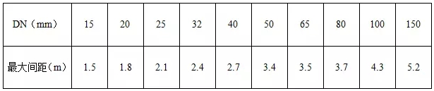 監(jiān)理工程師熟悉圖紙并對(duì)照現(xiàn)場(chǎng)復(fù)核管路走向,發(fā)現(xiàn)問(wèn)題及時(shí)給予設(shè)計(jì)研究解決。檢查預(yù)留預(yù)埋是否正確;臨時(shí)剔鑿應(yīng)與設(shè)計(jì),土建協(xié)調(diào)好。監(jiān)理工程師檢查無(wú)誤后,方可開(kāi)始管道支吊架安裝。支吊架的安裝應(yīng)符合《氣體滅火系統(tǒng)施工及驗(yàn)收規(guī)范》GB 50263-2007中的5.5.3條規(guī)定,管道支吊架安裝最大間距應(yīng)符合下列規(guī)定: