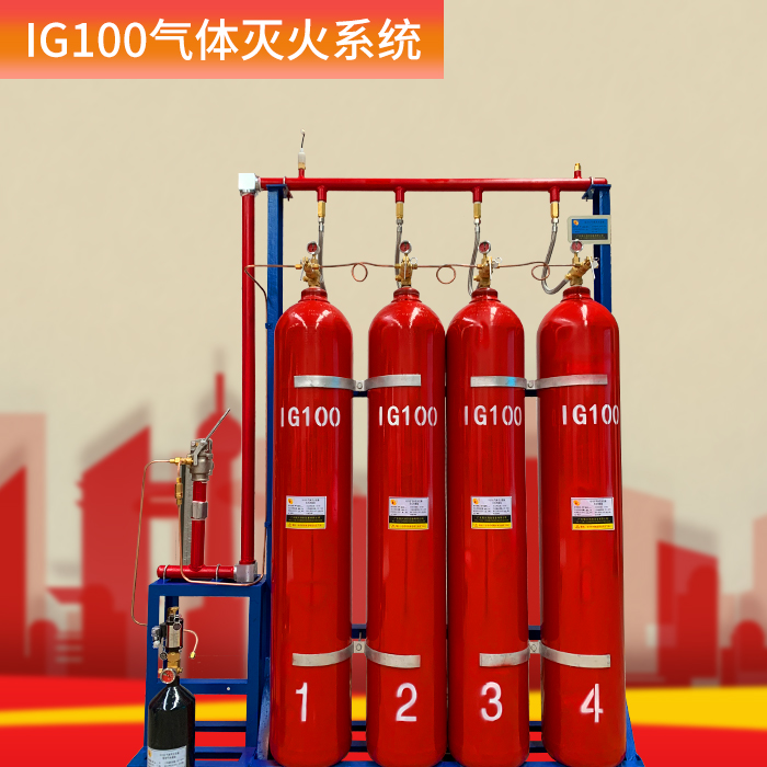 IG100是由100%的氮氣經過物理方式處理而成,噴放到防護區后在短時間內會使防護區內的氧氣濃度降低到能支持燃燒的12.5%以下,從而對燃燒產生窒息作用實現滅火。氣體IG100中氮氣不會對人體造成傷害。